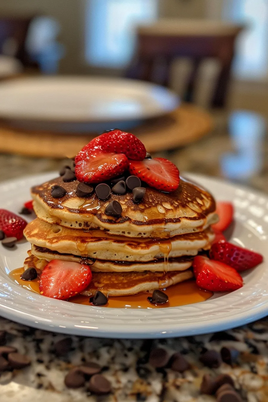 Indulge in the BEST Strawberry Chocolate Chip Pancakes!