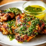 Chimichurri Chicken Thighs pair juicy grilled chicken with a bright herb sauce. The sauce uses parsley, garlic, vinegar, and a little heat. The recipe is simple and needs little prep.