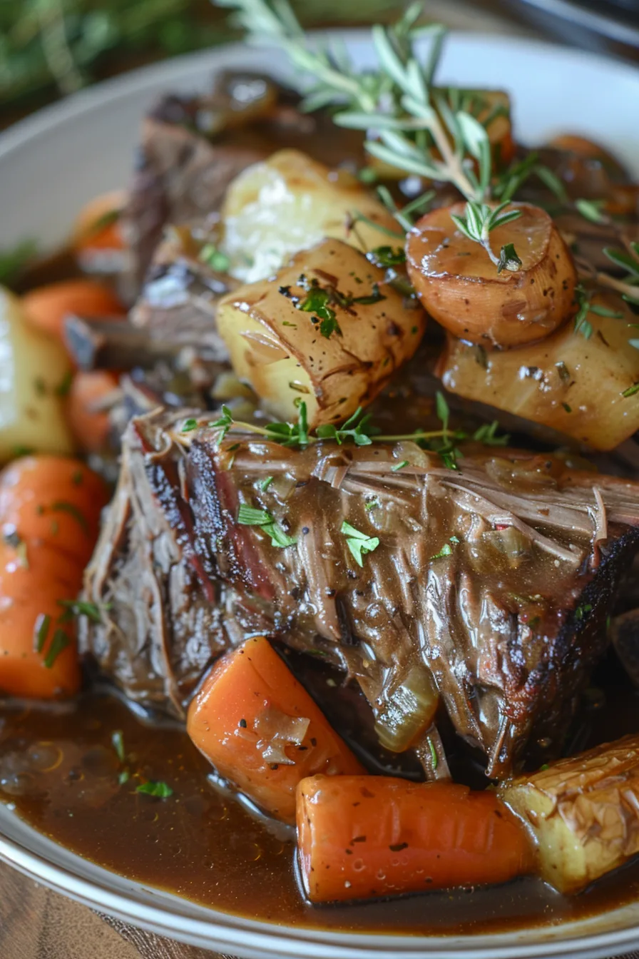 Pot roast pairs well with crusty bread, rice, or noodles to enjoy all the delicious gravy!