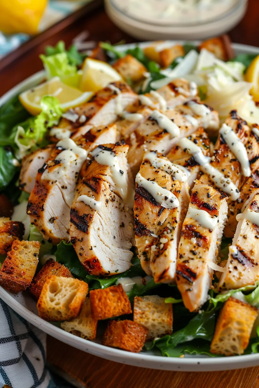- Serve immediately and enjoy your fresh, light, and delicious Grilled Chicken Caesar Salad!