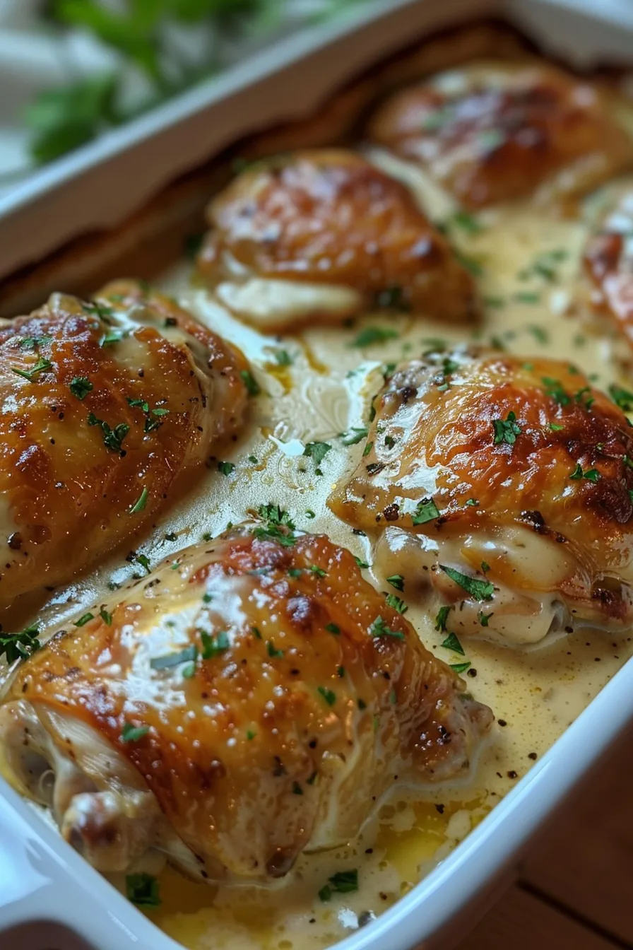 With a prep time of just 10 minutes and a cook time of 35 minutes, you can serve up a mouthwatering dinner in no time. Perfectly juicy chicken thighs complemented by a cheesy cream sauce will leave everyone coming back for seconds!