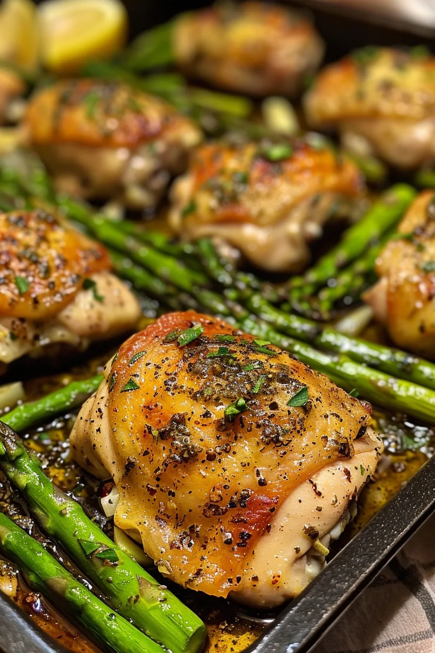 If you want to make this dish even healthier, consider using skinless chicken thighs or swapping them with chicken breasts. You could also try different herbs like thyme, rosemary, or parsley for a fresh twist. For a low-carb variation, replace asparagus with zucchini or cauliflower.