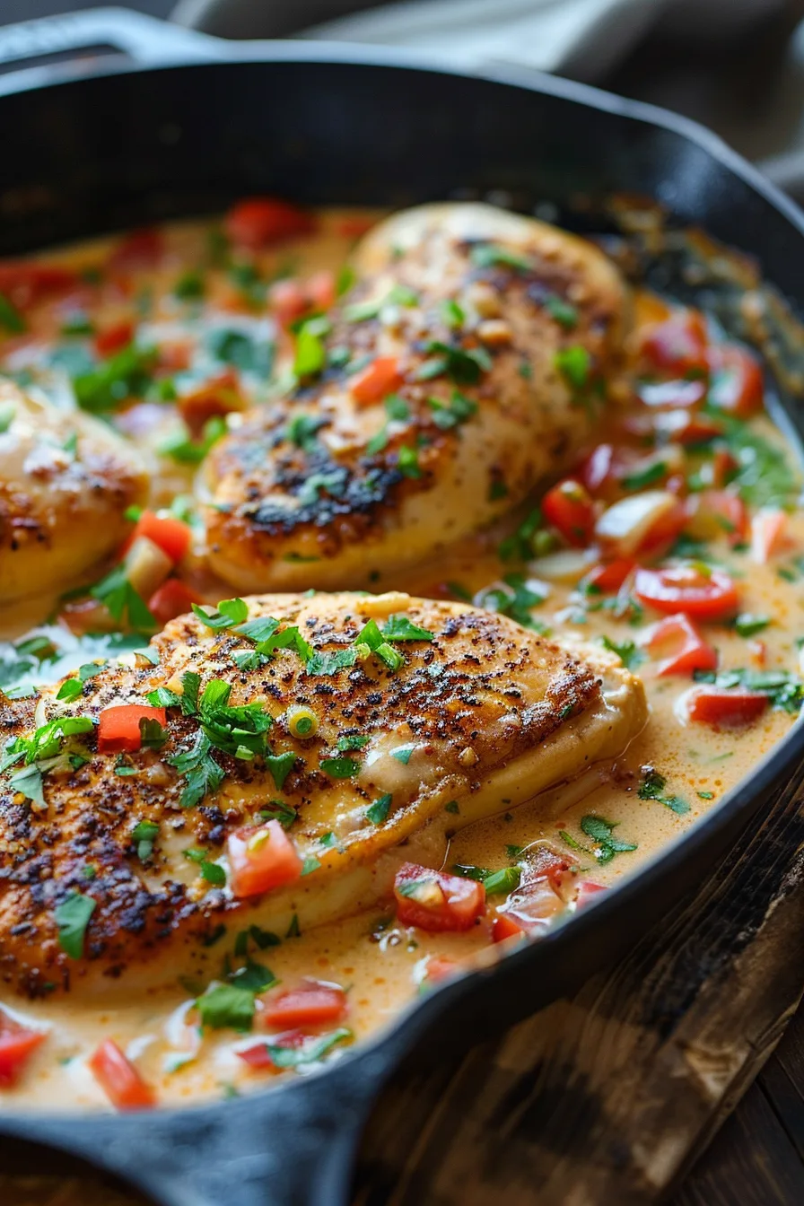 - Return the cooked chicken to the skillet and spoon the sauce over the top. Let it simmer for an additional 2-3 minutes to heat through.