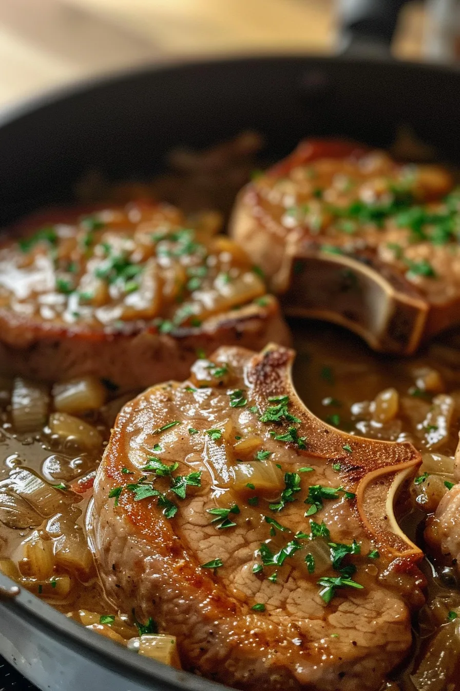 If you’re looking for healthier alternatives, you can opt for boneless, skinless chicken thighs instead of pork chops. Gluten-free flour can also be used to thicken the gravy. Additionally, substituting vegetable broth in place of chicken broth makes this dish suitable for vegetarians (with the adjustment of meat alternatives).