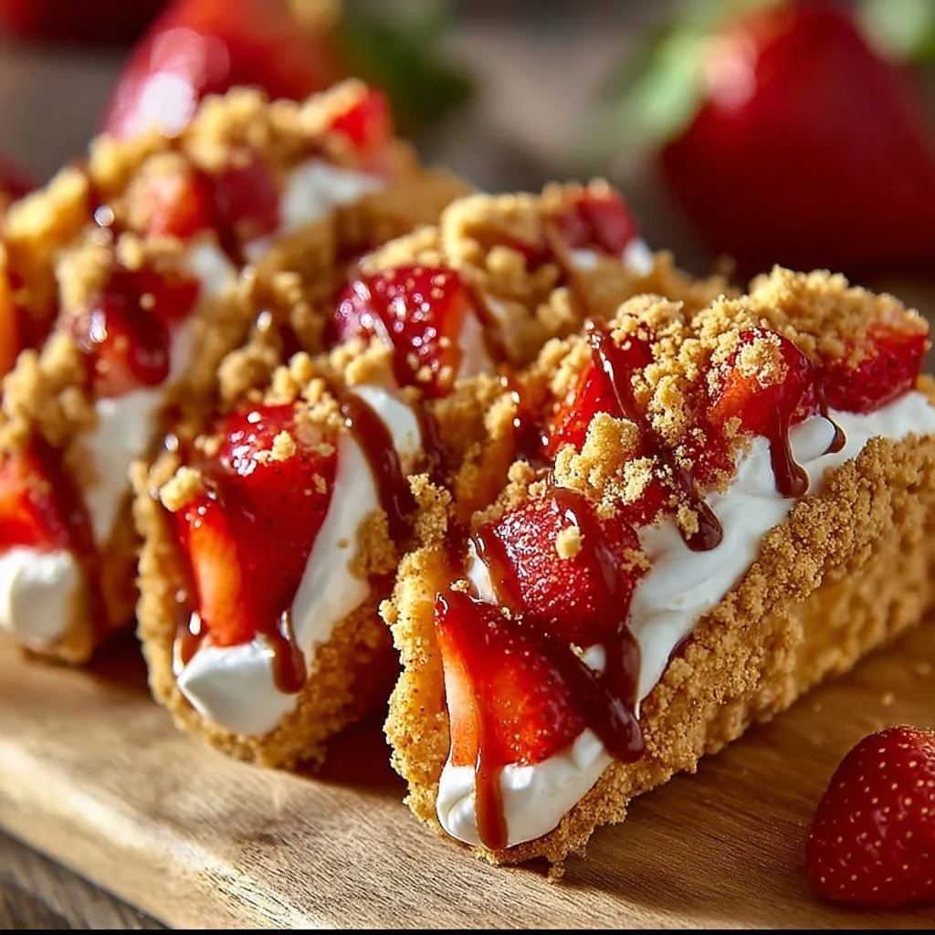 Strawberry Crunch Cheesecake Tacos are a fun and creative twist on traditional cheesecake. They combine creamy cheesecake filling with the sweet taste of strawberries, all wrapped up in a warm and crunchy tortilla. This recipe is simple to make, perfect for dessert lovers of all ages, and great for sharing at parties or family gatherings.