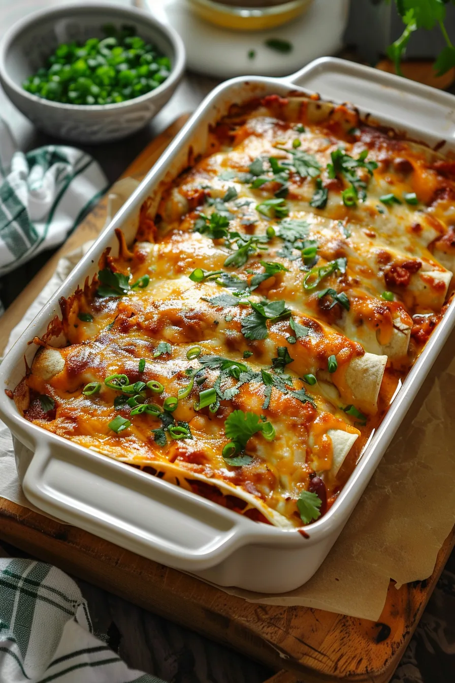 Tex-Mex Chicken Enchiladas Casserole – Cheesy, Spicy & Family-Friendly!