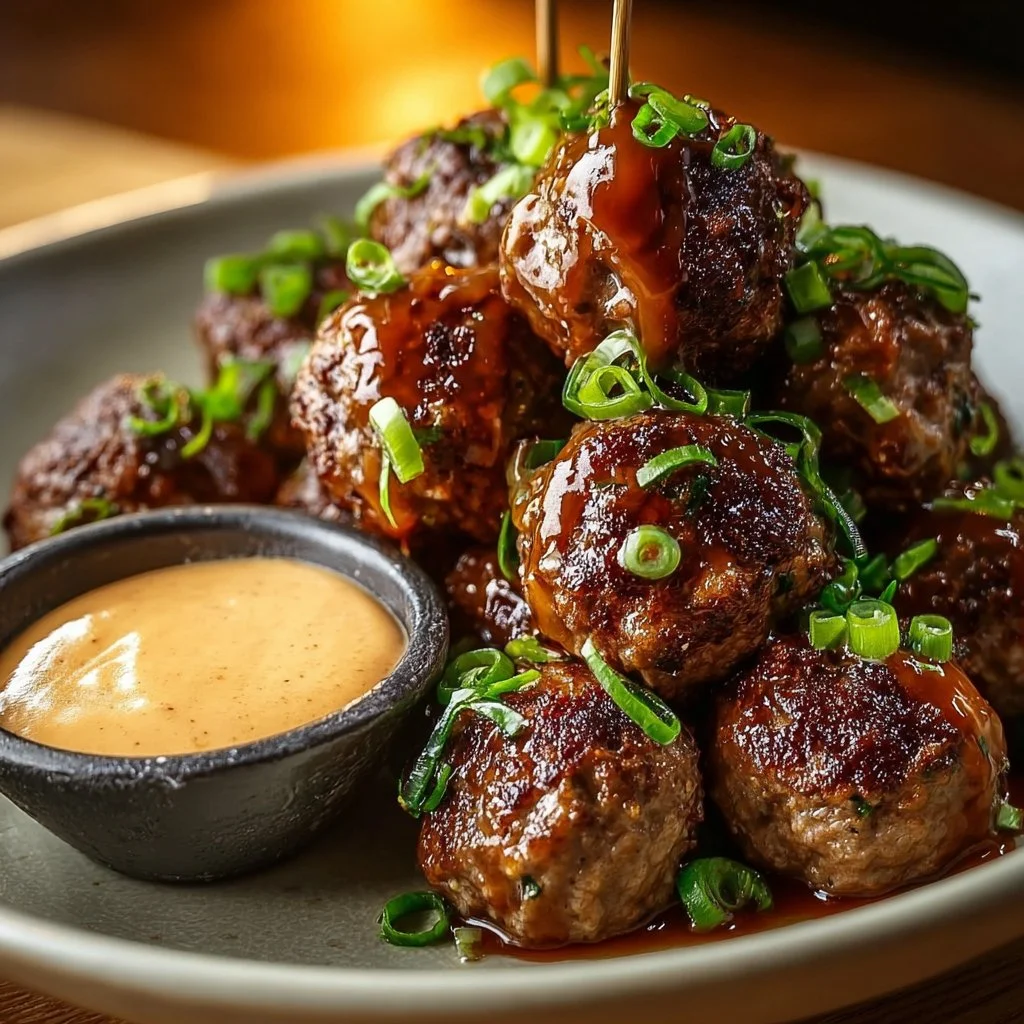 Korean BBQ Meatballs with Spicy Mayo Dip
